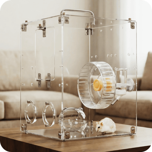 NO WIRES, MAXIMUM CLARITY - Stop peering through distracting wires and gaps! Can you truly see your small pets in traditional cages? Our acrylic cage delivers a NEW experience: a crystal-clear, 360° panoramic view. Your hamsters, rats, mice, gerbils, or other tiny friends are right there with you, letting you enjoy their every move in stunning, unobstructed clarity.